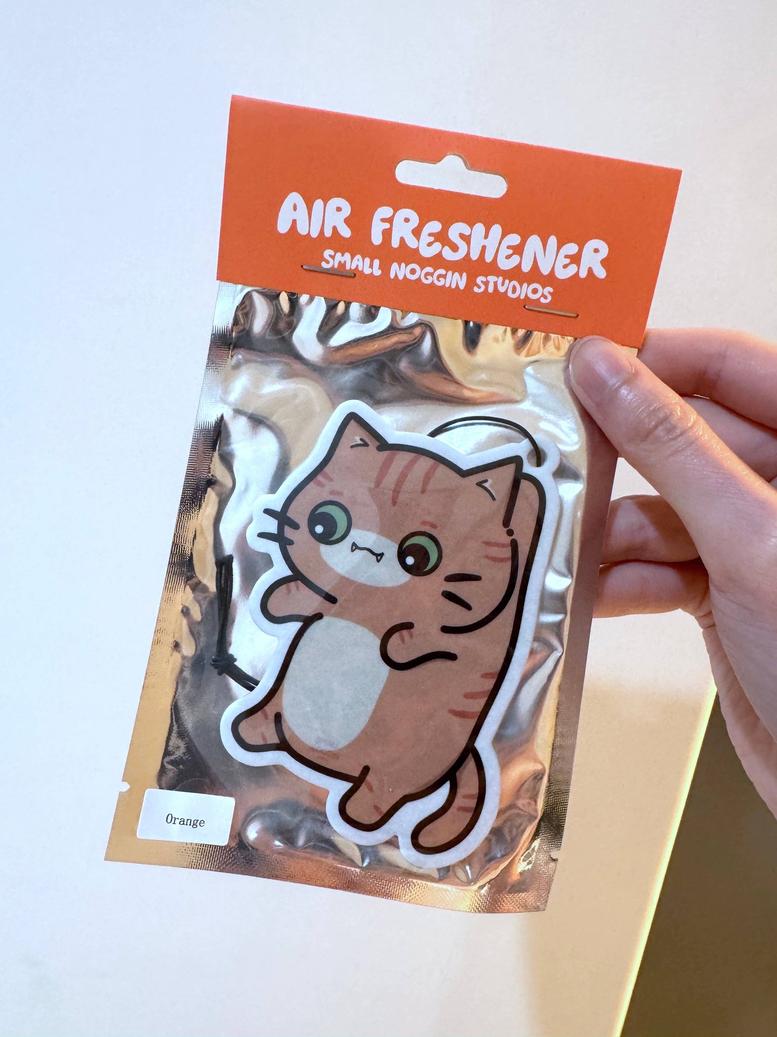 The air freshener is made of paper and is approximately 3". The scent lasts at least two weeks, but the illustration keeps on giving!