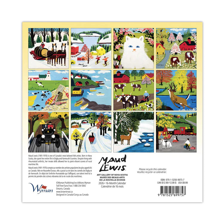 12 artworks by folk artist, Maud Lewis, are features in this small calendar.