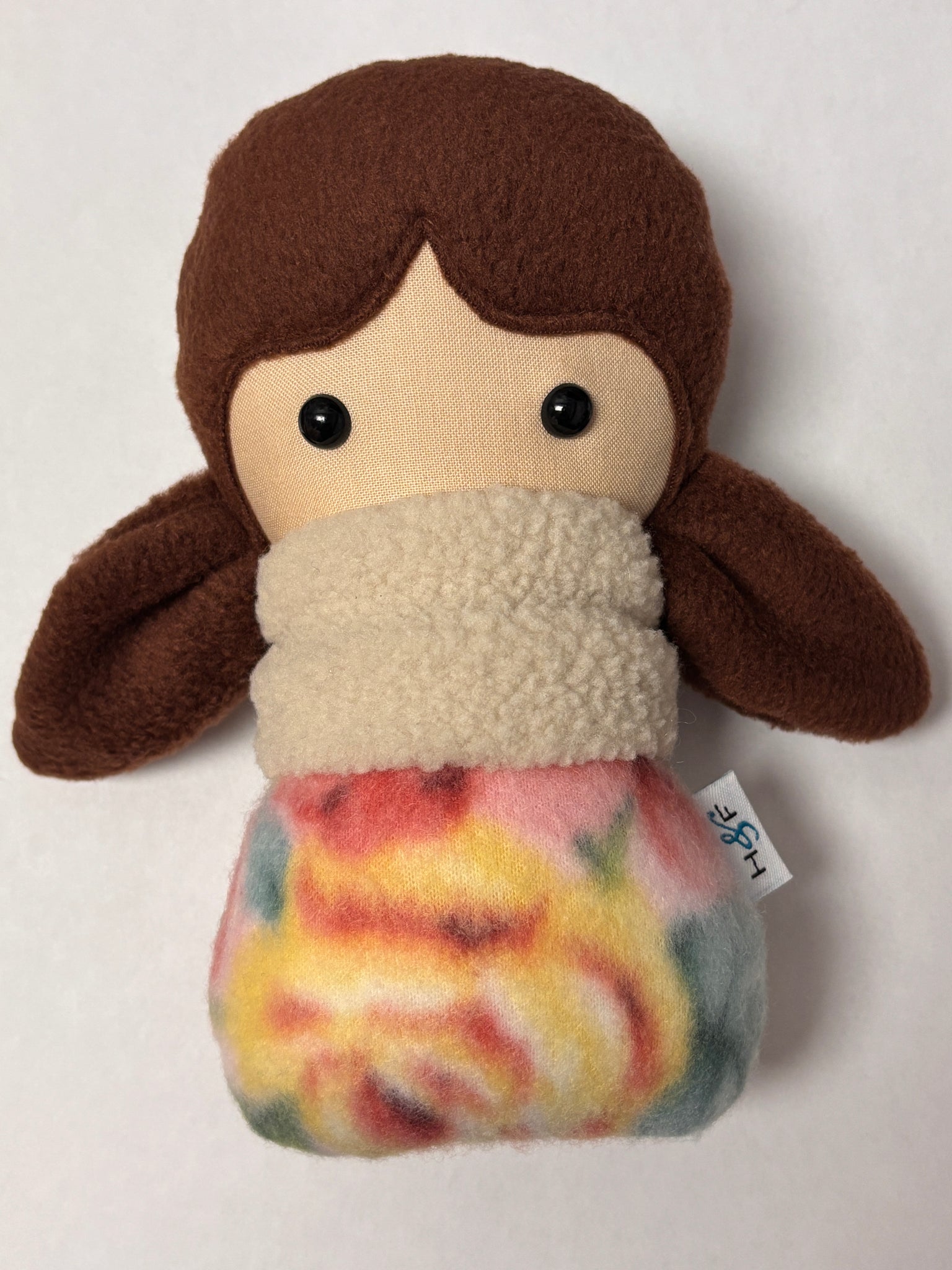 Each doll is handmade using soft and cuddly fleece and minky fabrics and 100% cotton for the skin. The doll is heirloom quality and made to last.