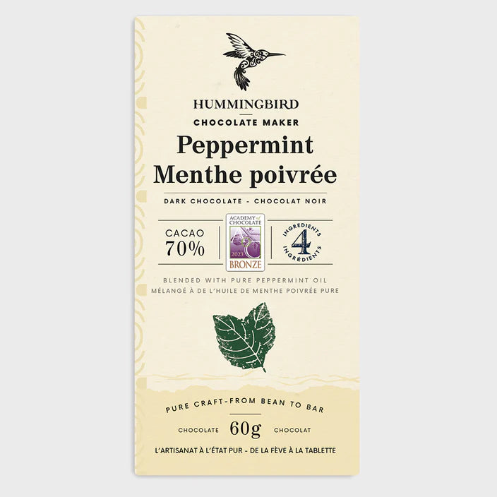 About Hummingbird Chocolate (Ontario): From careful sourcing of quality cacao beans to a deep commitment to the farmers who cultivate the beans, we have great respect for people who make food, from grower to artisan. With much care, we handcraft chocolate from our small workshop in beautiful Almonte, Ontario. Our chocolate is carefully made to bring the perfect balance of flavour, and we hope you can taste it in every bite. Hummingbird Chocolate is ethically traded.