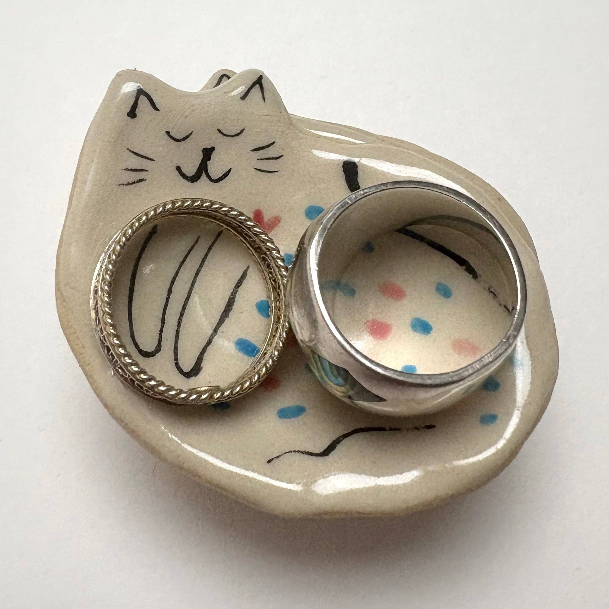 Tiny Handcrafted Ceramic Dish - Polkadot Cat