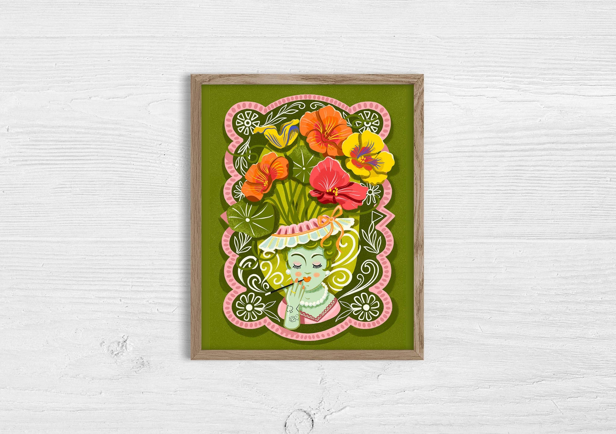 Vintage Lady Head Vase with Nasturtiums 8x10 Art Print